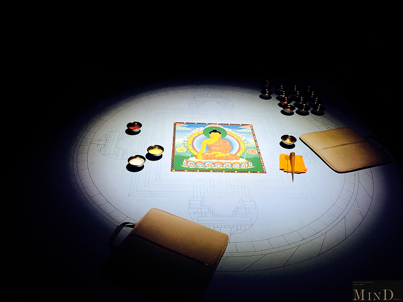 壇城,藏語dul-tson-kyil-khor,意思是“彩粉之曼陀羅”,源於印度佛教密宗、系密宗本尊及眷屬聚集供奉的道場,或曰,佛之家。千萬沙粒經由僧人之手細細填補進嚴謹構圖的方圓裡,拼成的壇城精密對稱,紛繁華麗,像一具佛軀,也像一座寺廟、王宮,又或者,只是一片幻景,一個念頭。