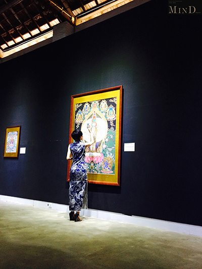 而7月13日舉辦的專場活動| Open Your Mind |,僅僅只是這一次以時間和虔誠修行而成的宗教藝術一隅罷了。來到現場,我們已經可以辨別出唐卡畫師筆下逐漸成形的藍天白雲,三位壇城鑄造者堆積勾勒出的小片佛像,甚至是門口已從青綠轉為枯黃的菩提簽到牆——時間如碎砂落瓶一般匆匆流逝,一分一秒都不肯為我停留,璀璨和衰敗轉瞬即易,毀滅和珍惜也是同一件事情。