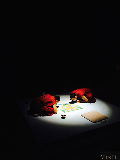 2014年7月至9月,四位遠道而來的尼泊爾僧侶畫師在梵木藝術館“築城”,終日作畫,整個過程將持續三個月的時間。在斑斕沙畫得以完成之日,也是將之付諸流水“毀城”之時,以此象徵無常與瞬時。