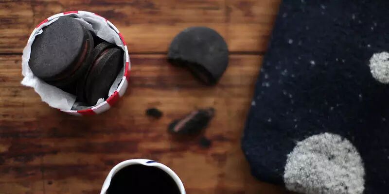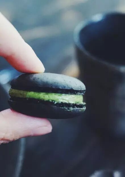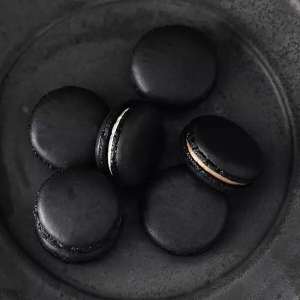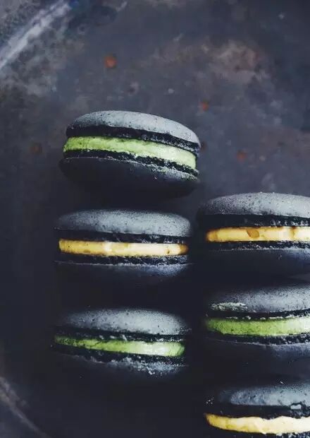 誰說馬卡龍一定要粉粉嫩嫩少女心?黑法師出品暗黑系甜品——把一切美味抹黑,連餅皮都是黑的。