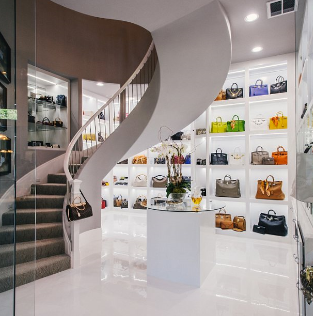 先別管她是何方神聖,她的衣櫥才是我們看傻眼的。這位女土豪花了50萬美金專門請設計師給自己打造了這座“大金山”,三層樓高,300多平方米,樓梯還是氣派的旋轉梯,恐怕任何一家旗艦店都要自嘆不如了。
