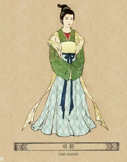 商周禮制十五而笄;西漢深衣制,上襦下裙,街市羅衣飄飄;南北朝衣身緊貼,對襟直領衣袖細窄,引入胡服風範;唐中前期小頭鞋履窄衣裳,披帛半臂興盛;晚唐時世寬妝束,衣裙寬鬆;宋尚素雅;明霞帔比甲興盛;清漢族傳統服飾終結,滿族特色的旗袍影響至今。