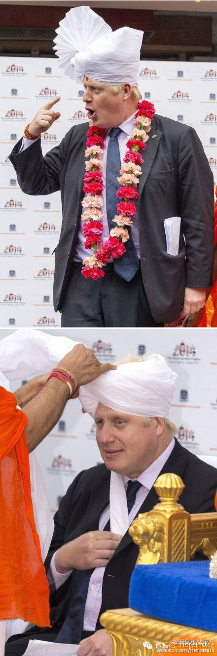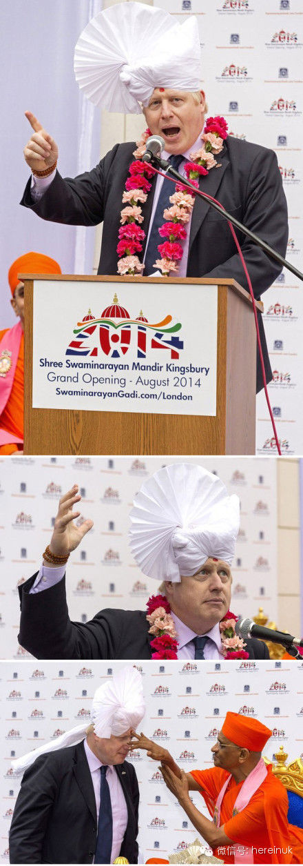 倫敦市長Boris 。訪問了倫敦的印度神廟。帶印度頭巾腦門上點紅點的Boris。一如既往的萌。