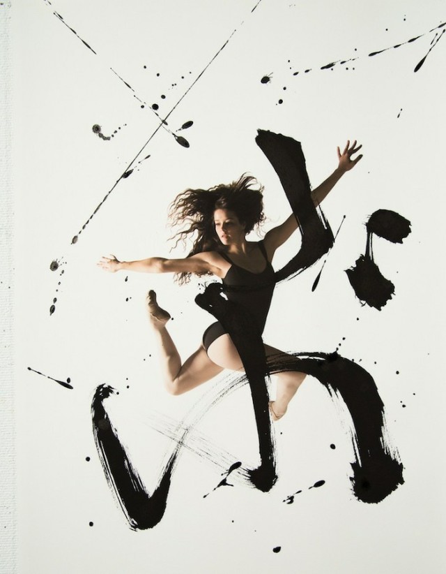 兩人決定合作完成一組作品--芭蕾與水墨書法的結合,有著強烈的視覺效果。