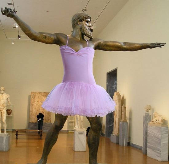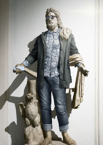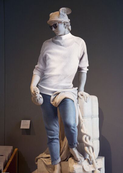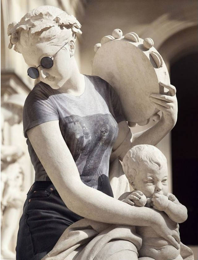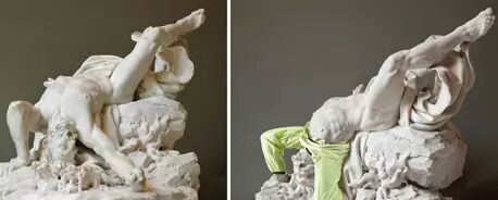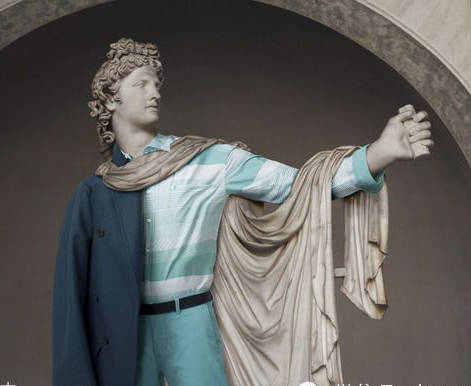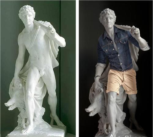 因為有雕像禁止令,他通過神奇的Photoshop等現代化技術實現了這一創意。穿著衣服擺著和雕塑一樣的姿勢和形態,然後用電腦技術將雕像取代人體模特,這樣一個完美的作品就誕生了!穿上衣服的“神仙”們是不是一下子就時髦起來了呢?