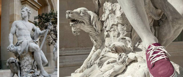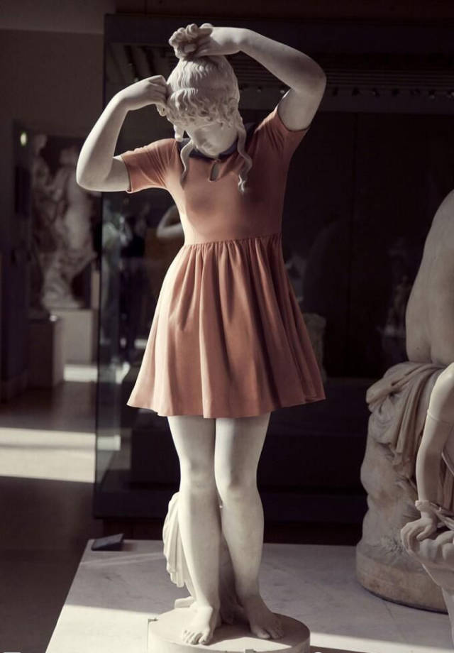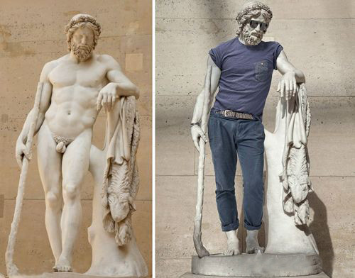 當中國遊客遊覽於世界著名的盧浮宮地下博物館時,是否還是偶爾會因為眼前全是裸體塑像而尷尬?畢竟現代文明告訴我們,在公眾場合穿著衣服是一種禮貌。但博物館裡的“神仙”們都是幾千年前的人物了,你還能指望他們理解什麼是禮貌嗎?於是,一位年輕的法國攝影師做了一件驚世駭俗的事情:為盧浮宮裡的裸體雕像“穿”上了時髦的衣服!