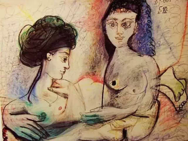 畢加索很小就表現出對女人早熟的興趣。13歲畫下了《小驢與母驢》,是它們交媾的畫面。他承認,他從孩童時代一下子就過渡到性成熟,無論是他的生活還是他的作品,都沒有經歷過少年時代。