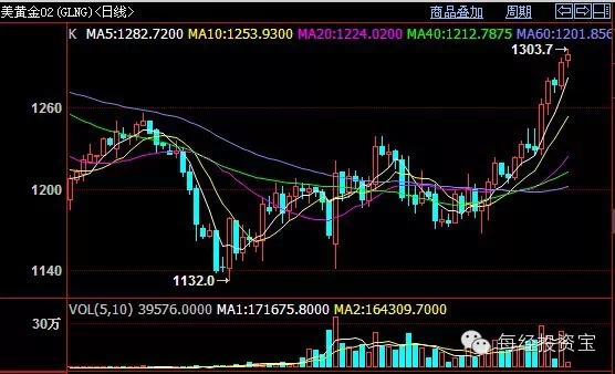 國際黃金價格走勢圖(日K線)