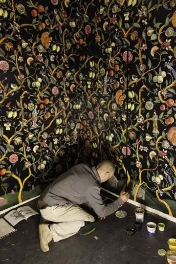 65. 藝術家馬克·金沙埃夫在伯里莊園修補中國手繪壁畫。