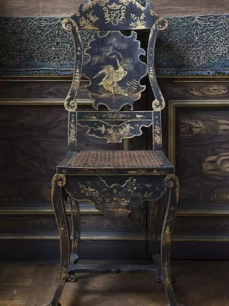 25. 兒童中國漆木椅,並繪有孩子的紋章,1720s,奧斯特里公園。這是弗朗西斯爵士為自己較小的孩子,定制的整套家具中的一件。