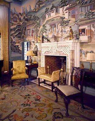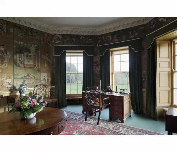4. 18世紀40年代約翰·帕克的妻子凱瑟琳夫人,繼承了薩爾特倫宅邸(Saltram House),他們著手進行改建和裝修,張貼大量的中國壁紙。