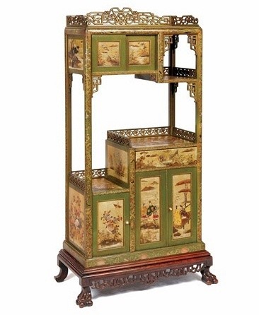 37. 綠色中國風不對稱漆櫃,法國,約1880年。