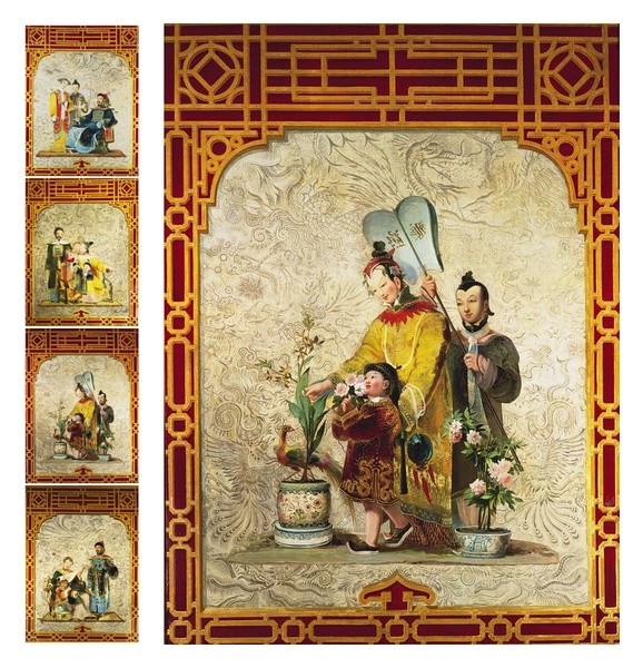 15. 1810年,英王喬治四世的4扇手繪牆板,中間圖案為布面油畫,by 羅伯特·瓊斯(設計師)。