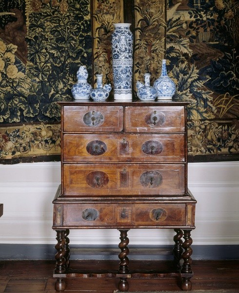 29.荷蘭胡桃木玳瑁櫃放著中國瓷器,Dyrham Park,格洛斯特郡。