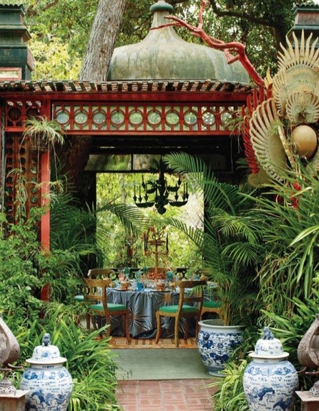 18. Ann Getty,打開的是一個令人眼花繚亂房間,確切的說是東方風格,身後的邊櫃放著中國花瓶的檯燈和瓷器裝飾。