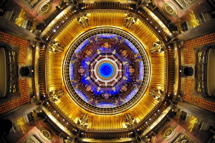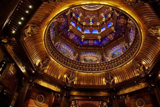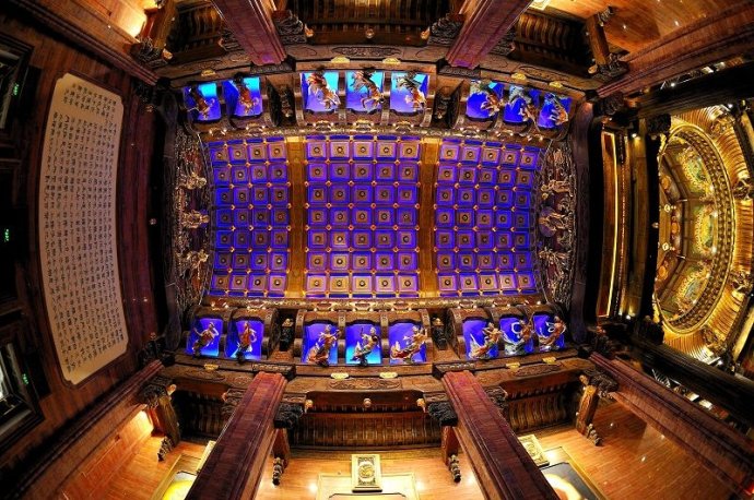 仰天望去,幽藍色的華塔頂蓋繁星閃爍,通透而深邃,彷彿置身一望無垠的藍色蒼穹之下。
