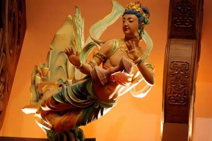 飛天侍女雕像栩栩如生,凌空欲飛。