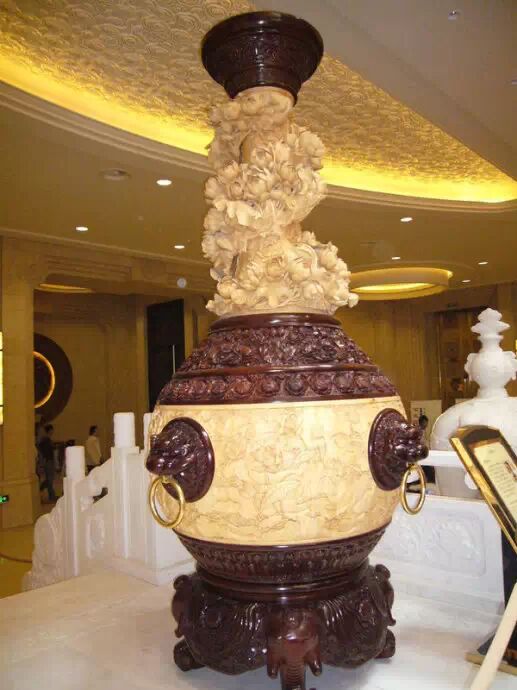 門廳入口兩旁放有一對近四米高的白木雕花瓶,為東陽木雕大師陸正光的傑作。