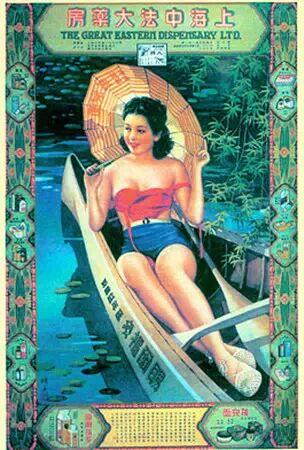 讓我們再來看看100年前的上海月份牌。上海開埠,西方思潮湧入,民國當時的社會風氣已相當開放。月份牌上的女性形像多為豐腴肉感,時髦性感。露個胳膊、腿啥的是小case,坦胸露乳的很多,甚至還有“限制級”的……這些香艷、性感的元素彷彿超越了時代。