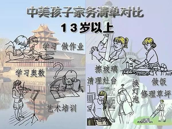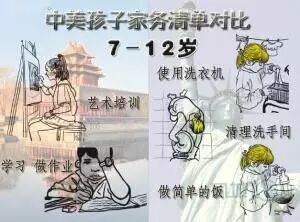 7-12歲:不僅要熟練掌握前幾個階段要求的家務,並能做簡單的飯;幫忙洗車;吸地擦地;清理洗手間、廁所;掃樹葉,掃雪;會用洗衣機和烘乾機;把垃圾箱搬到門口街上(有垃圾車來收)。