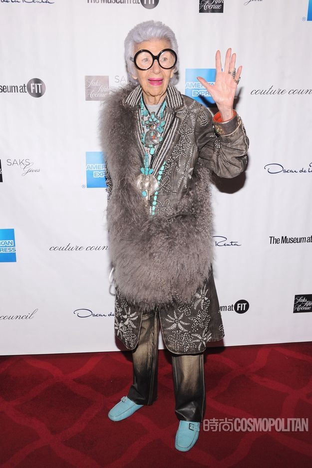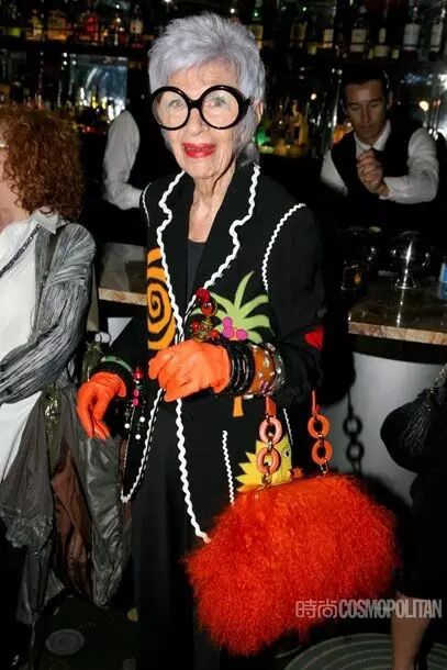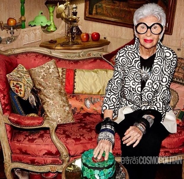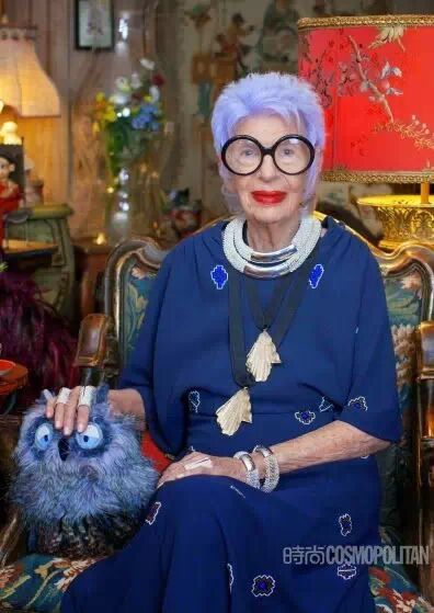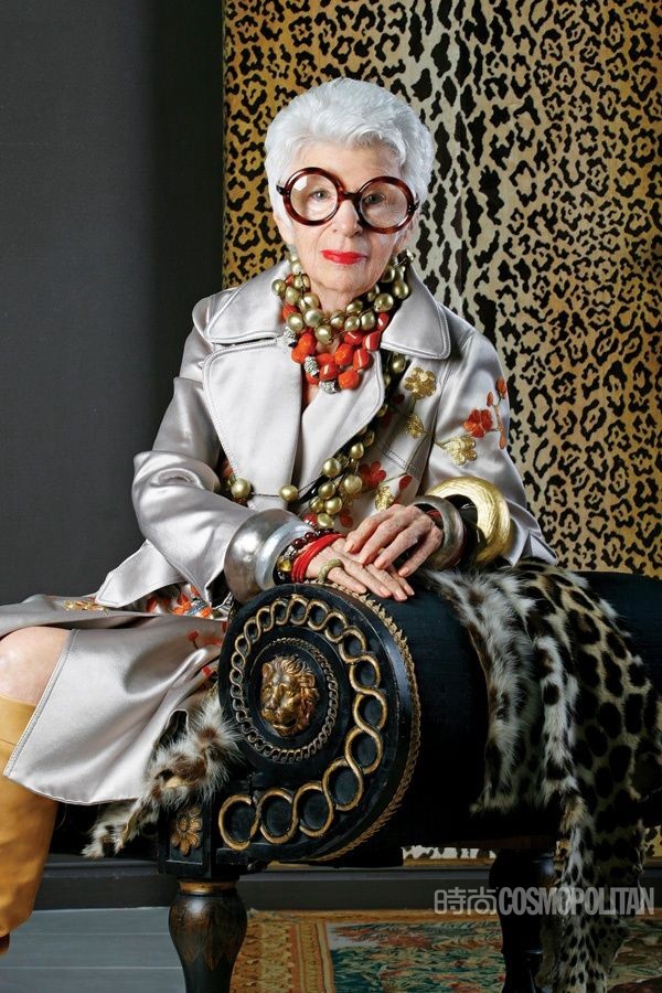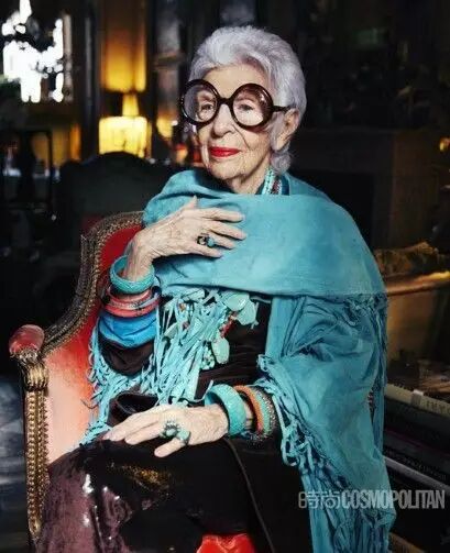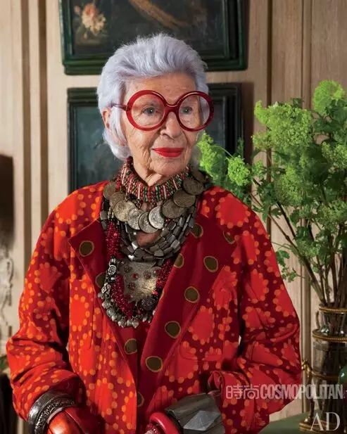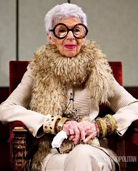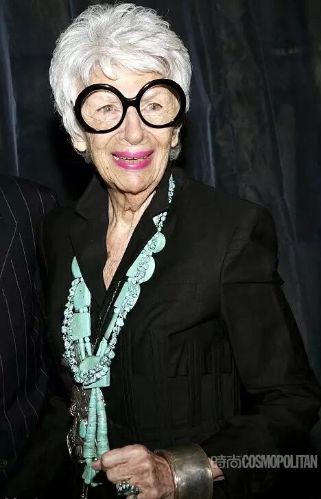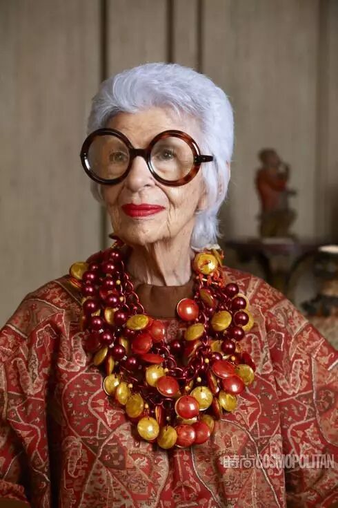 阿拉蕾黑框眼鏡、亮色唇膏、誇張手鐲、大膽混搭風打造出一個史上最高齡時尚ICON——Iris Apfel。她為一線品牌拍攝畫報、她是各大秀場的座上賓,她的服飾收藏和古董公寓讓人艷羨不已。都說出名要趁早,但是這位80歲才出道的"瘋狂"老太卻在短短時間內在時尚圈裡成為“太后”級人物。