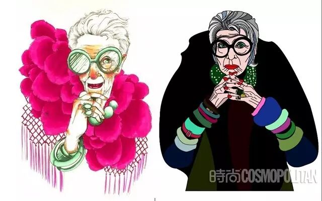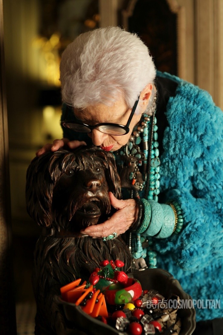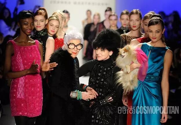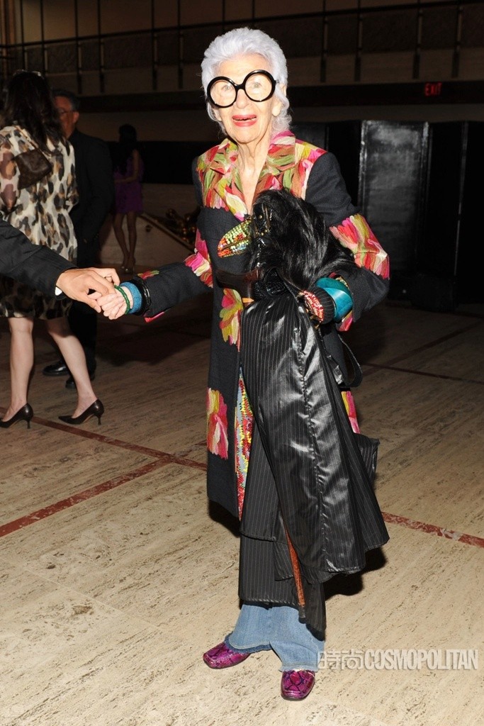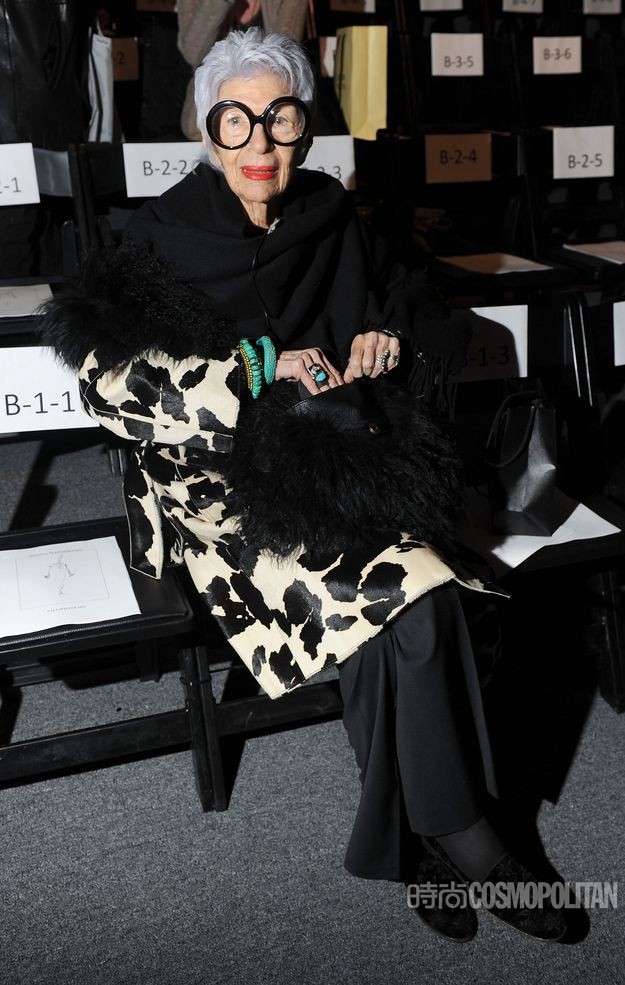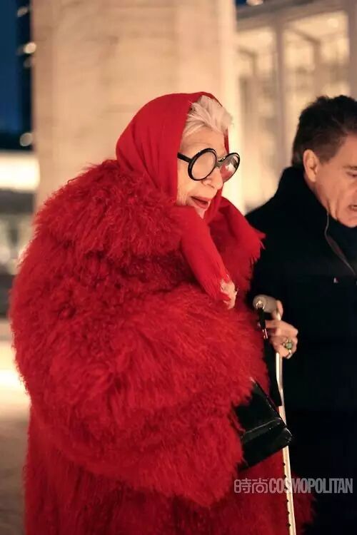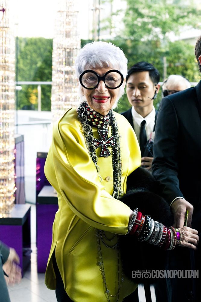 阿拉蕾黑框眼鏡、亮色唇膏、誇張手鐲、大膽混搭風打造出一個史上最高齡時尚ICON——Iris Apfel。她為一線品牌拍攝畫報、她是各大秀場的座上賓,她的服飾收藏和古董公寓讓人艷羨不已。都說出名要趁早,但是這位80歲才出道的"瘋狂"老太卻在短短時間內在時尚圈裡成為“太后”級人物。