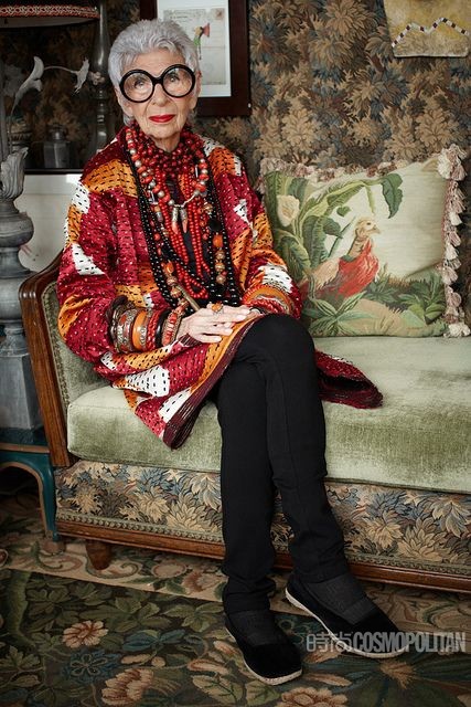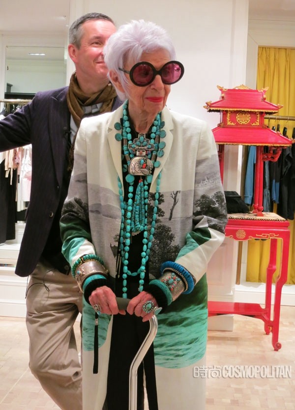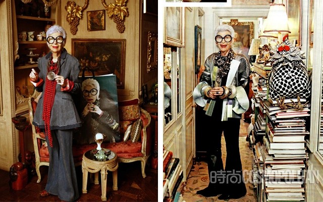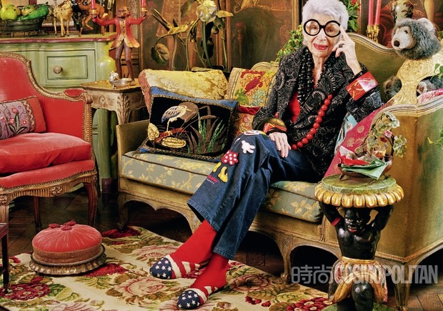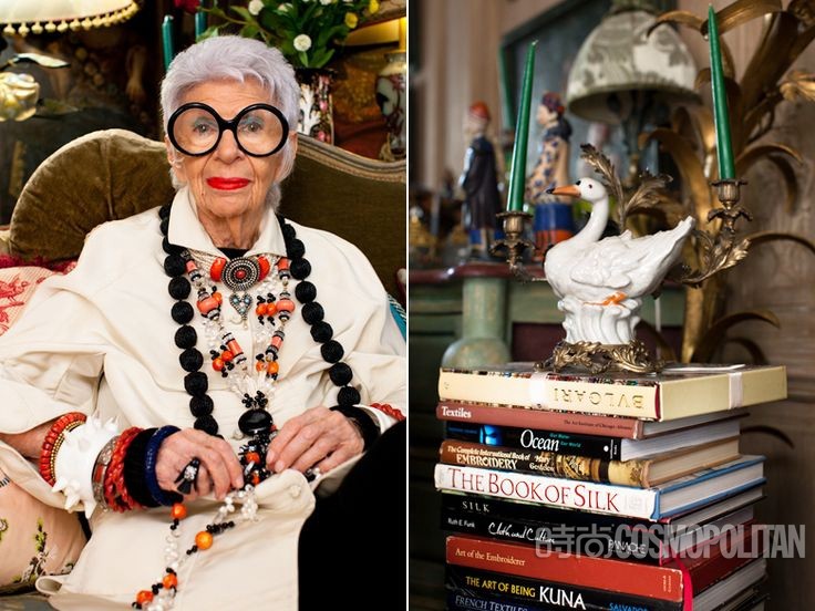 鳶尾花Apfel至今還保持著瘋狂購物的習慣。不僅是古董商店,她還會去逛Topshop,穿Levi's牛仔褲。她的所有收藏都是從12歲開始瘋狂購買積攢出來的,所以,她拒不承認自己是個收藏家,只是喜歡。