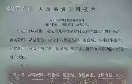 買雞蛋要警惕了,央視等媒體已經曝光了!假雞蛋和真的雞蛋沒啥兩樣,而且吃了容易得老年癡呆和白血病!孕婦吃了會難產!市場上很多假雞蛋!!為了不碰到至於吃到假雞蛋。請用心讀完!人造雞蛋的蛋殼是用碳酸鈣做的,蛋黃和蛋清則是用海藻酸鈉、明礬、明膠、食用氯化鈣加水、色素等製成。其做法先將一定量的海澡酸鈉倒入一盆溫水內攪拌成蛋白狀物體,用明膠拌勻,再加苯甲酸納、白礬等其它化學品混入製成蛋白,而蛋黃只是加些檸檬黃色素,再加氯化鈣混合倒入模具形成蛋形,產生蛋的薄膜,蛋殼則是用石蠟、石膏粉、碳酸鈣等製成。假雞蛋主要原料是海藻酸鈉水溶液還有氯化鈣等化學材料。我們可以算筆賬:以1公斤雞蛋在6.5元左右為例。1公斤的海藻酸鈉只需要42元錢,能製作出150公斤的假雞蛋,加上其他費用,1公斤假雞蛋的成本才0.55元左右。整個製作時間不到5分鐘,這可比母雞下蛋要高效率。以前就知道人造蛋神馬的!今天終於自己在家裡做了!乍一看這些人造雞蛋和真的土雞蛋外觀上沒有什麼區別,但它們的主要成分卻是化工原料。現場實驗為你揭開人造雞蛋的製作過程……