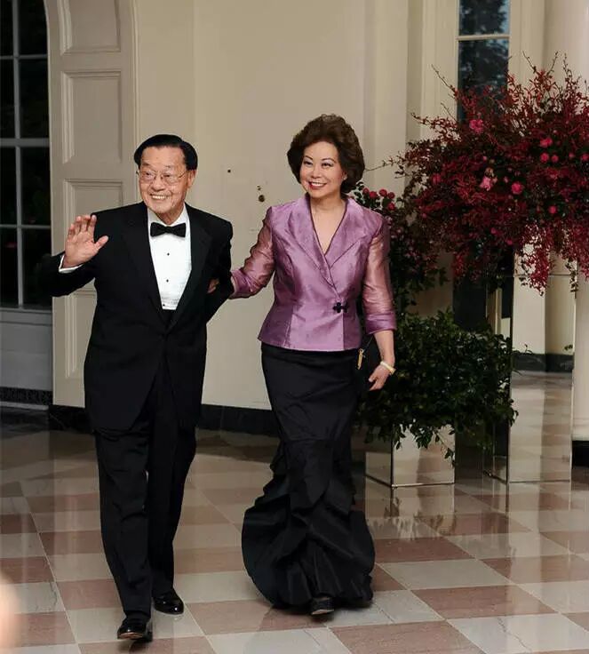 美國前華裔勞工部長趙小蘭與父親趙錫成出席宴會。