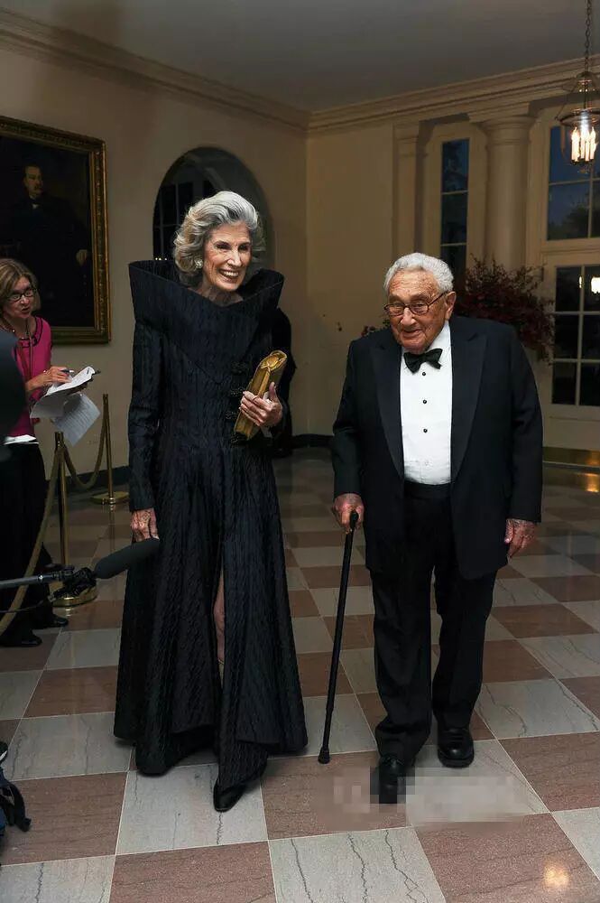美國前國務卿基辛格與夫人南希出席宴會,中國的老朋友基辛格真是又萌又紳士,一頭銀髮的夫人也是雍容大氣。