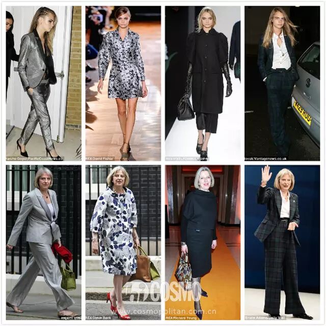 女政客的造型總是談資,就像之前森蝶寫過的蔡英文一樣,但Theresa的衣著卻是少見的驚艷。號稱英國“政壇超模”的梅姨簡直是一路引領英國政壇的時尚新指標啊。英國Daily Mail甚至把她和超模Cara Delevingne作比較,梅姨竟然沒有輸!