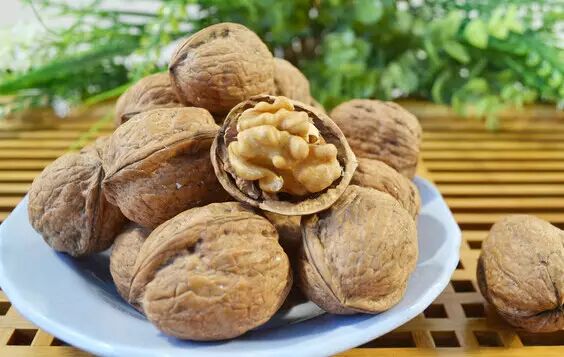 核桃個頭大小均勻,縫合紋路緊密,殼色白而光潔的是優質核桃,如果表面泛油發黑的核桃則是劣質核桃。
