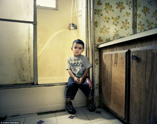 據英國《每日郵報》報導,丹麥攝影師埃斯基爾森(Joakim Eskildsen)在過去7個月走訪了美國5個州,記錄了當下美國社會底層人民的生活現狀。照片中人物們的生活與電視中所展示的“美國夢”形成巨大反差,他們的辛酸鮮有人知。據報導,美國有超過4500萬人口生活在貧困線之下,佔總人口近七分之一。圖中的這位女子名叫凱特,她和丈夫孩子居住在臨時拖車裡。由於常年遭受丈夫虐待,她不得不把孩子送去和母親一起生活。在一次意外中,凱特一家居住的拖車失火,大火將其僅有的財產全部燒毀。美國聯邦緊急事務管理局曾大量出售拖車給貧困人口,以此解決房屋短缺問題,此舉曾多次遭美國社會譴責,認為存在嚴重的安全隱患。