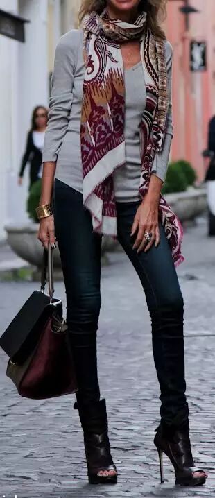 一條絲巾不僅可以抵擋深秋的寒意,更是點綴造型的好幫手。