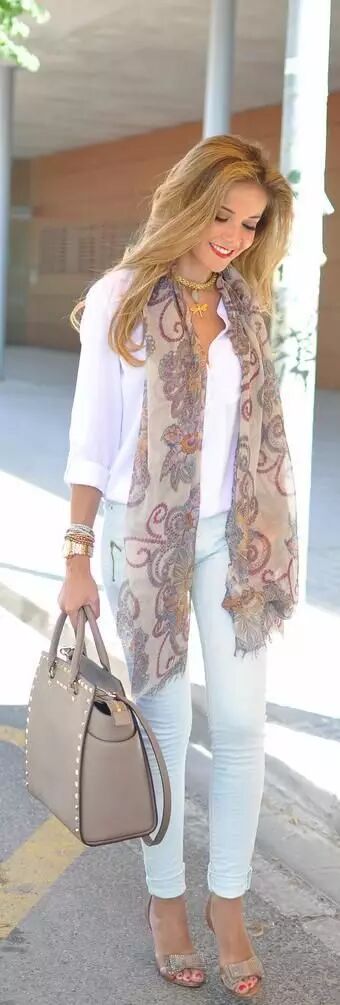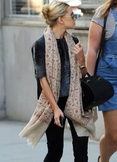 最隨意的方法就是把絲巾隨意搭在肩上,這種圍法在視覺上也最能顯瘦。