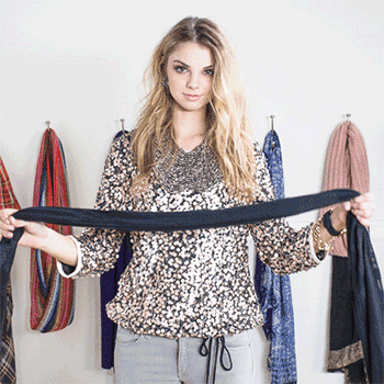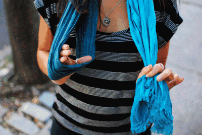 如果想要讓你的絲巾更多點造型感,不妨交叉之後給它打一個鬆垮的結。