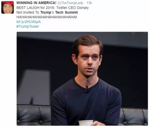 而各家媒體還發現了一個大笑點——在總統競選期間給川普幫了大忙,成為他治國理政重要渠道的Twitter的CEO Jack Dorsey卻未能獲邀參加此次大會。