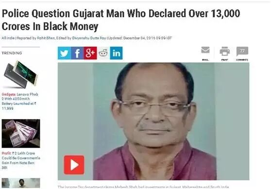 而在此之前,“收入申報計劃”還發現了另一位富豪——馬赫什·庫馬爾·尚帕克拉·沙阿(Mahesh Kumar Champaklal Shah),其申報的數額為1386億盧比(約20.4億美元)。當沙阿對當地電視台表示,這筆款項並非屬於自己、而是屬於一些政客和官僚等人時,稅務部門將其從電視台演播室帶走並展開問訊。