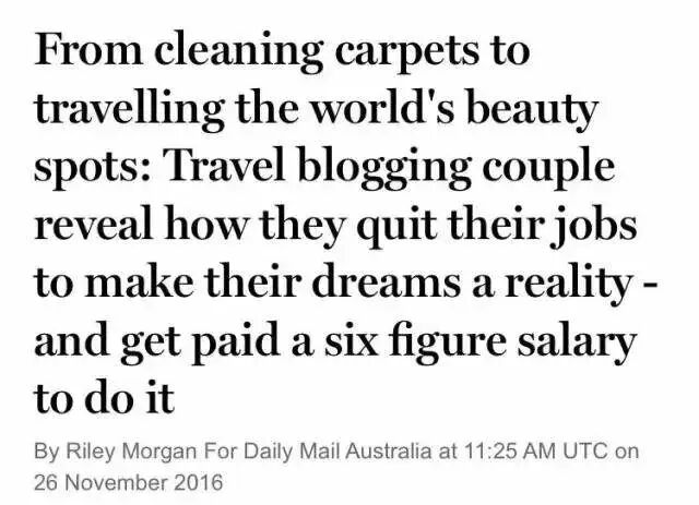 事情是這樣的,英國《每日郵報》上個月有一篇文章,說的是有一個英國的清潔工辭職去環遊世界,結果現在他的人生天翻地覆,升職加薪!出任攝影師!牽手白富美!天天發狗糧!