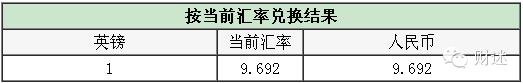 1 英鎊 = 9.692 人民幣