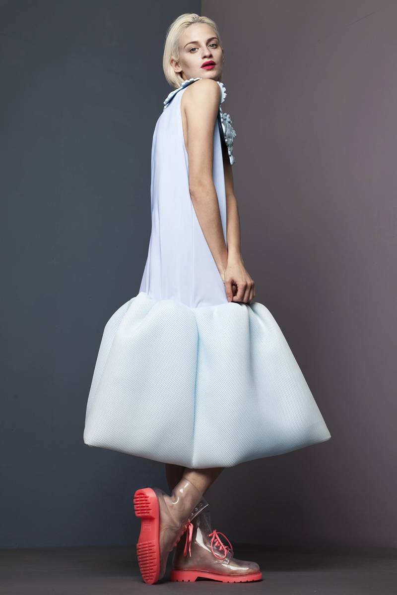 這位來自中國的設計師,曾設計出軟糖般多彩的秋冬季服裝。60年代的巴黎世家設計,出現過氣球廓形的裙裝,和蛋形輪廓的大衣,簡潔而大氣,而李筱正是受到了它的影響。在談到秋冬設計時,她曾這樣說道: