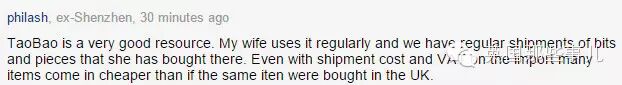 TaoBao是個好地方。。。我老婆現在經常在上面買東西啊!甚至加了國際運費和關稅之後居然還比英國買便宜很多。。。。