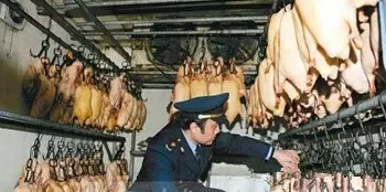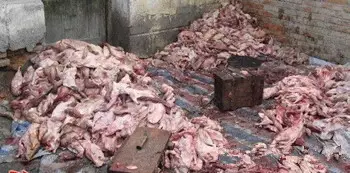 食品監督工作人員查獲病死鴨類製作現場,死鴨的臭味連黑作坊店主自己都覺得掩鼻噁心。