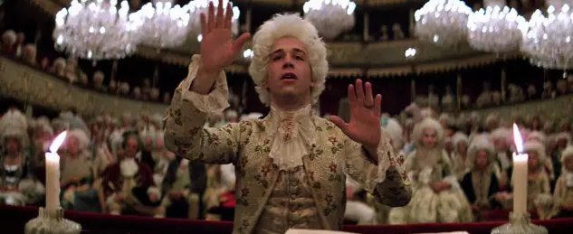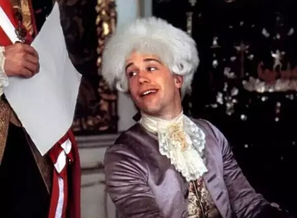 這一時期的服裝開始有了明媚的顏色,像莫扎特這種天真而倜儻的音樂天才,估計特別好這口。