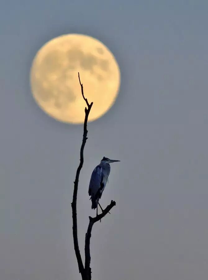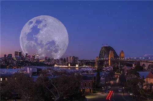 因為月亮離我們實在是太遠了,所以即便說是超級月亮,畢竟也不會太大,可怎樣才能讓它在照片上顯得非常super呢?最簡單粗暴的方法當然是買個遠攝鏡了,不過這只適用於土豪。除此之外,還有一個方法簡單易學,婦孺皆可用,只需要掌握一個小技巧:用前景來映襯超級大月亮。