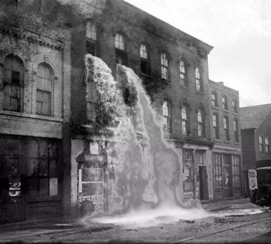 40.1929 年,美國底特律,禁酒時代從樓上傾瀉而下的酒。