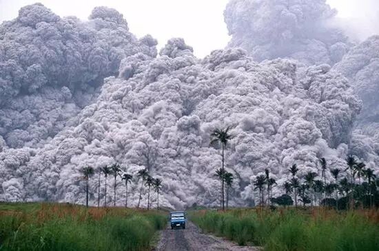 6.1991 年,菲律賓皮納圖博火山大爆發,一輛小貨車在遮天蔽日的火山灰塵中向外奔逃。