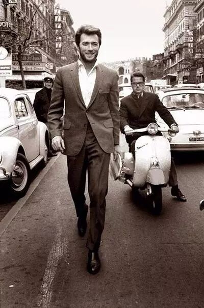 24.1960年,後來主演了《鏢客三部曲》的克林特·伊斯特伍德。試想一下,60年代,哪個少女能忍受這樣一個1.93cm的雄性男子走在大街上……