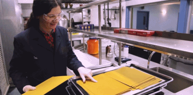 經過反复的試驗和探索,她最終成功的將銀納米粒子嵌入紙張,做成了一種質地厚實、抗菌性很強的黃色紙張。