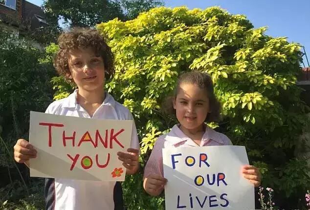 Peter的孫子孫女也前來感謝救命恩人:感謝你,給了我們生命。